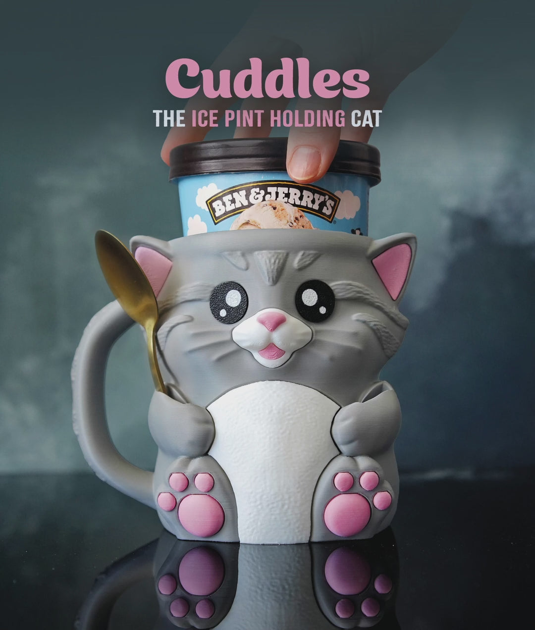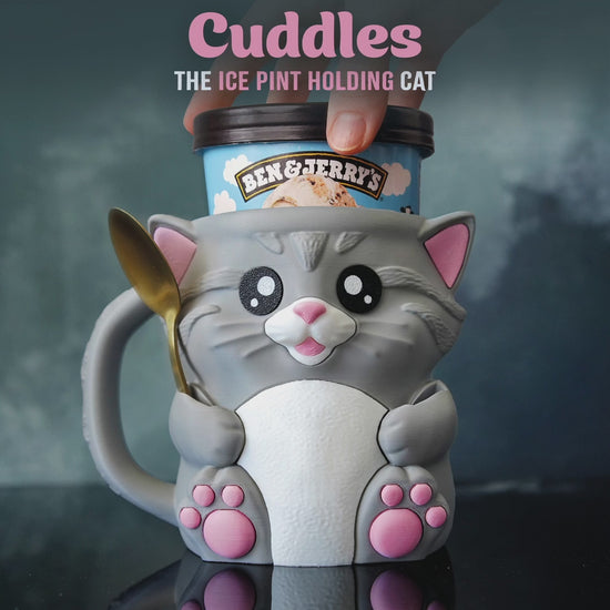 Cuddles the Cat – Ice Cream Pint Holder with Snack Drawer