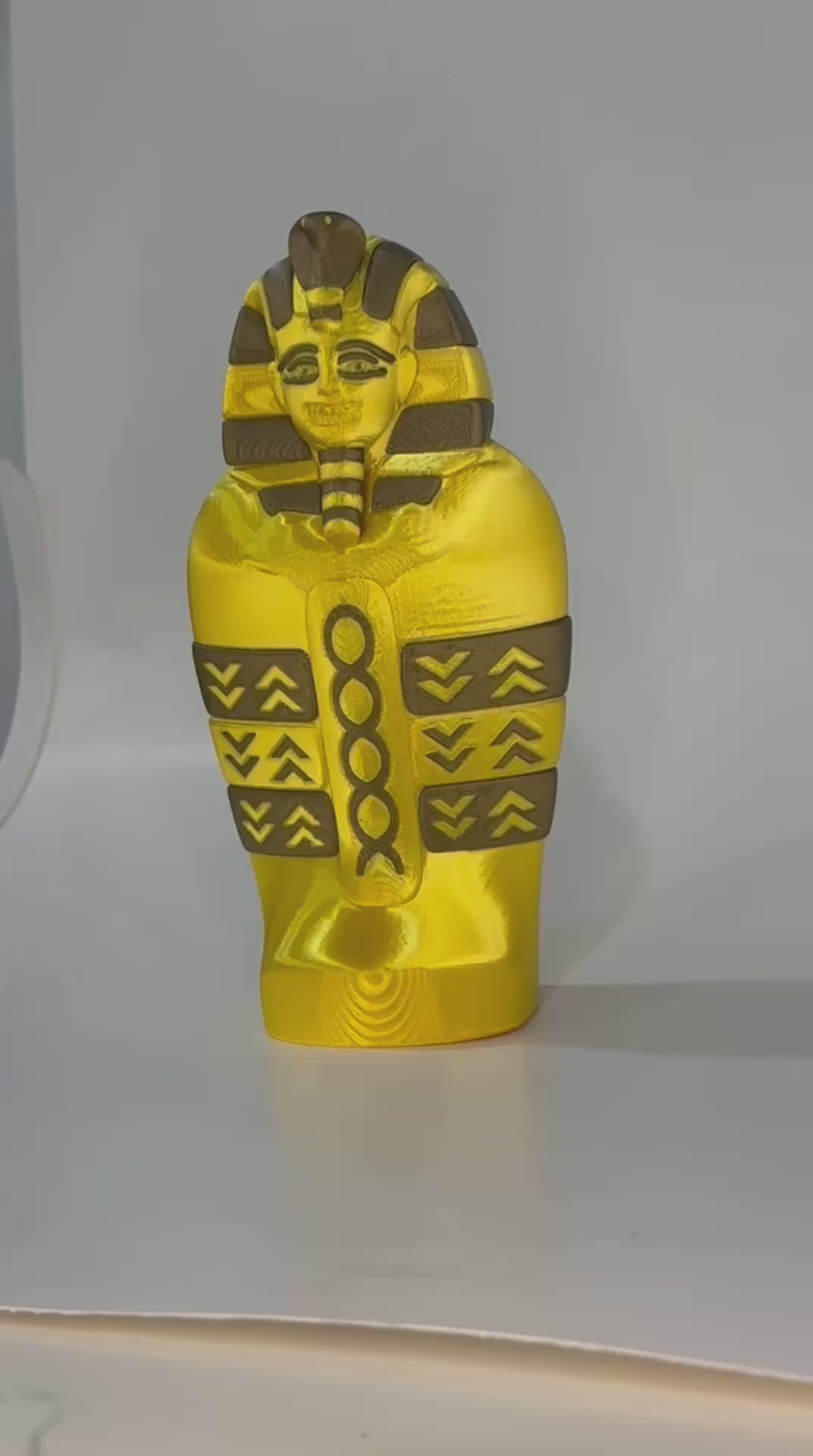 Made with high-quality PLA filament in stunning metallic gold and desert-tan tones, it’s both playful and display-worthy — a must-have for your Halloween décor or desk treasure.